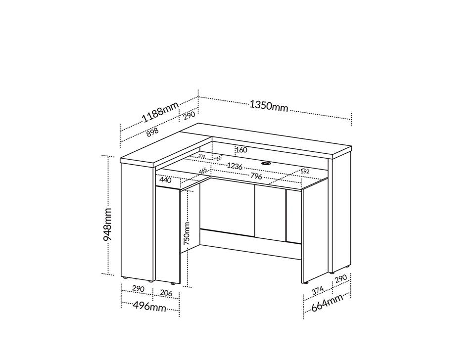 - Cores disponíveis: Freijó/Branco e Nogal/Preto