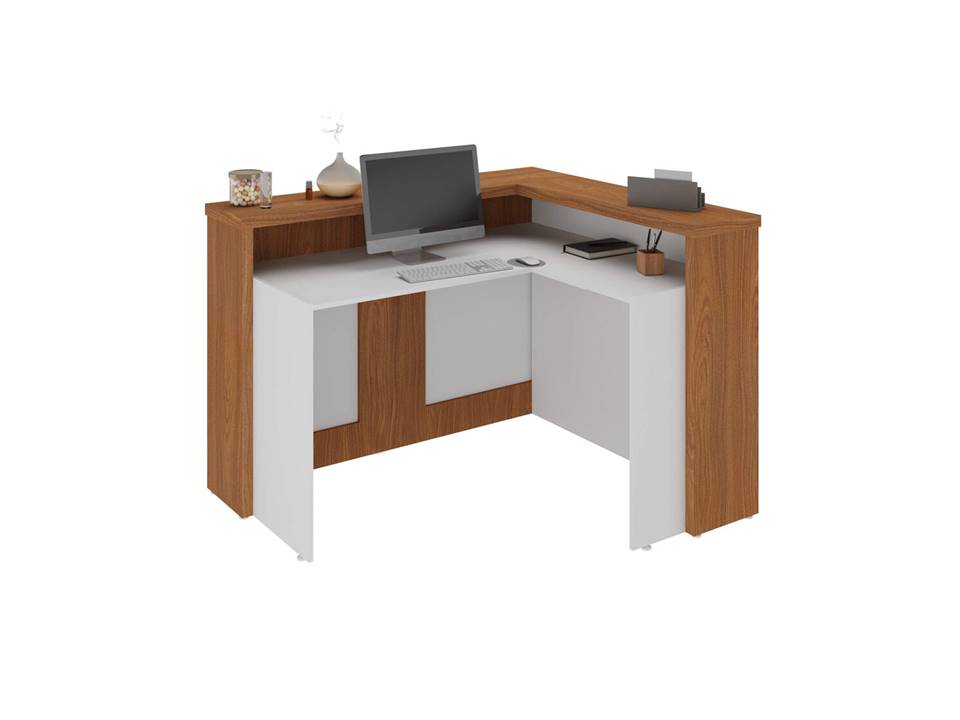 Disponível nas combinações modernas Freijó/Branco e Nogal/Preto, o balcão harmoniza com diferentes estilos de decoração, oferecendo versatilidade estética e um visual profissional.