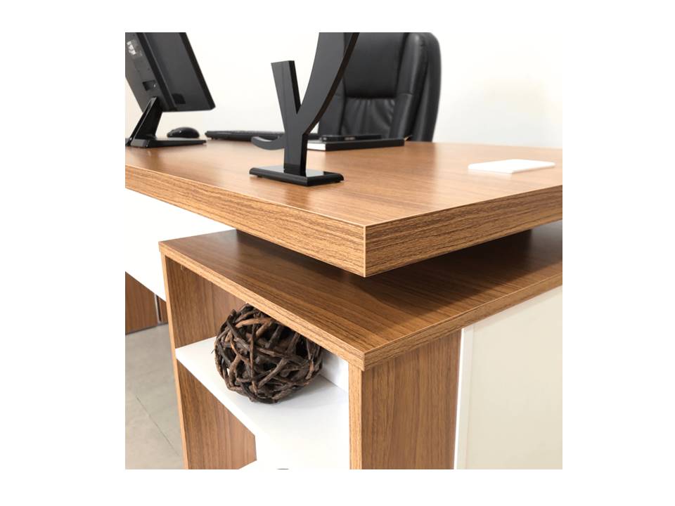 Seu tampo em Tamburato de 37mm de espessura proporciona resistência, durabilidade e imponência, tornando a mesa ideal para rotinas intensas e longas jornadas de trabalho. A estrutura reversível permite montagem para o lado direito ou esquerdo, oferecendo flexibilidade total de acordo com o layout do seu escritório.