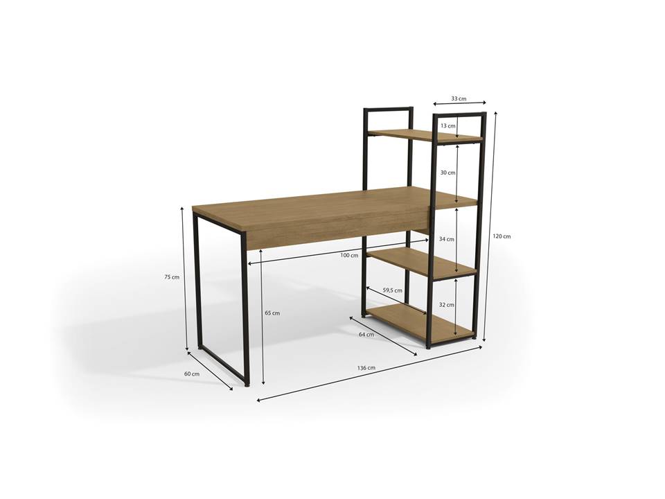 Com dimensões generosas (136 cm de largura, 122 cm de altura e 64 cm de profundidade), ela se adapta perfeitamente a diferentes usos: escritório, home office, quarto de estudos, ateliê ou até como estação gamer. As 3 prateleiras laterais suportam até 7 kg cada, oferecendo espaço ideal para livros, itens decorativos, eletrônicos ou materiais de trabalho, mantendo tudo ao seu alcance.