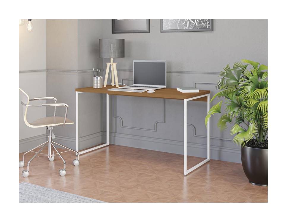 Com acabamento em Pintura Touch e estrutura pintada em PU, a mesa oferece um visual sofisticado e acabamento premium que combina perfeitamente com ambientes corporativos, escritórios em casa ou espaços de estudo. Os pés metálicos robustos garantem estabilidade, suportando até 60 kg, ideal para notebooks, monitores, livros e materiais de escritório.